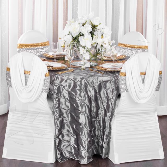 * Questions about our gold sequin chair band? Please don’t hesitate to call us!