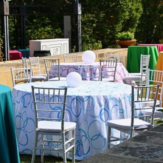 * Questions about our 120 inch rd blue cerchio linen? Please don’t hesitate to call us!