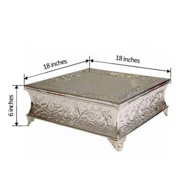 * Questions about our 18 inch sq silver cake stand? Please don’t hesitate to call us!