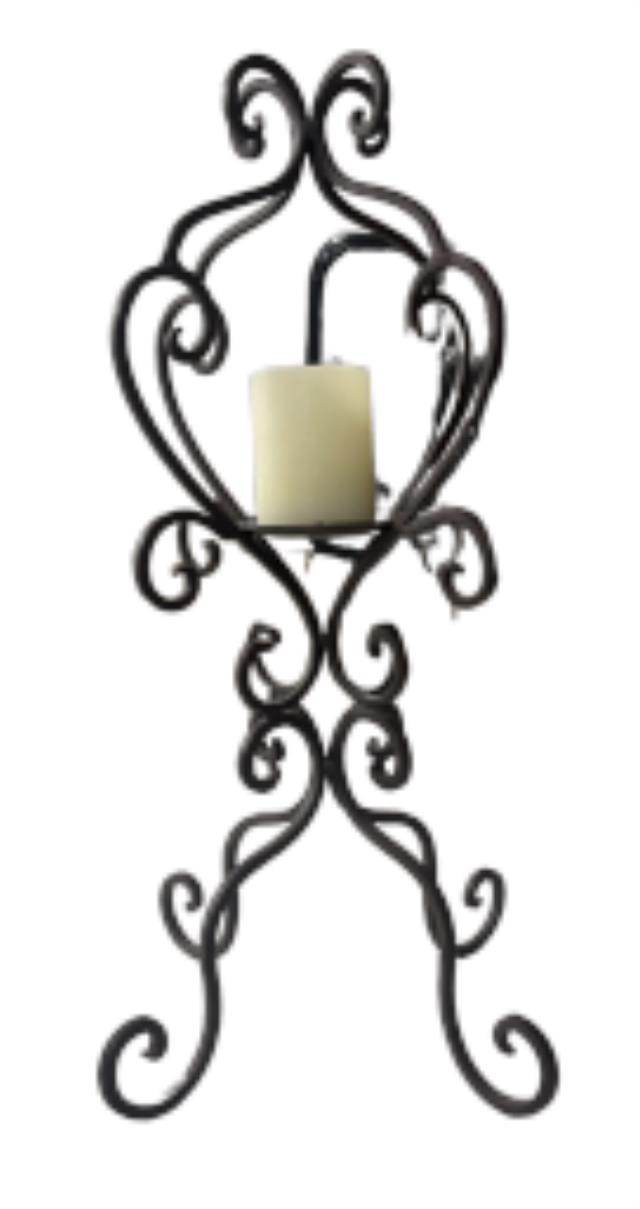 Iron Scroll Pillar Candle Stand w/ decor
